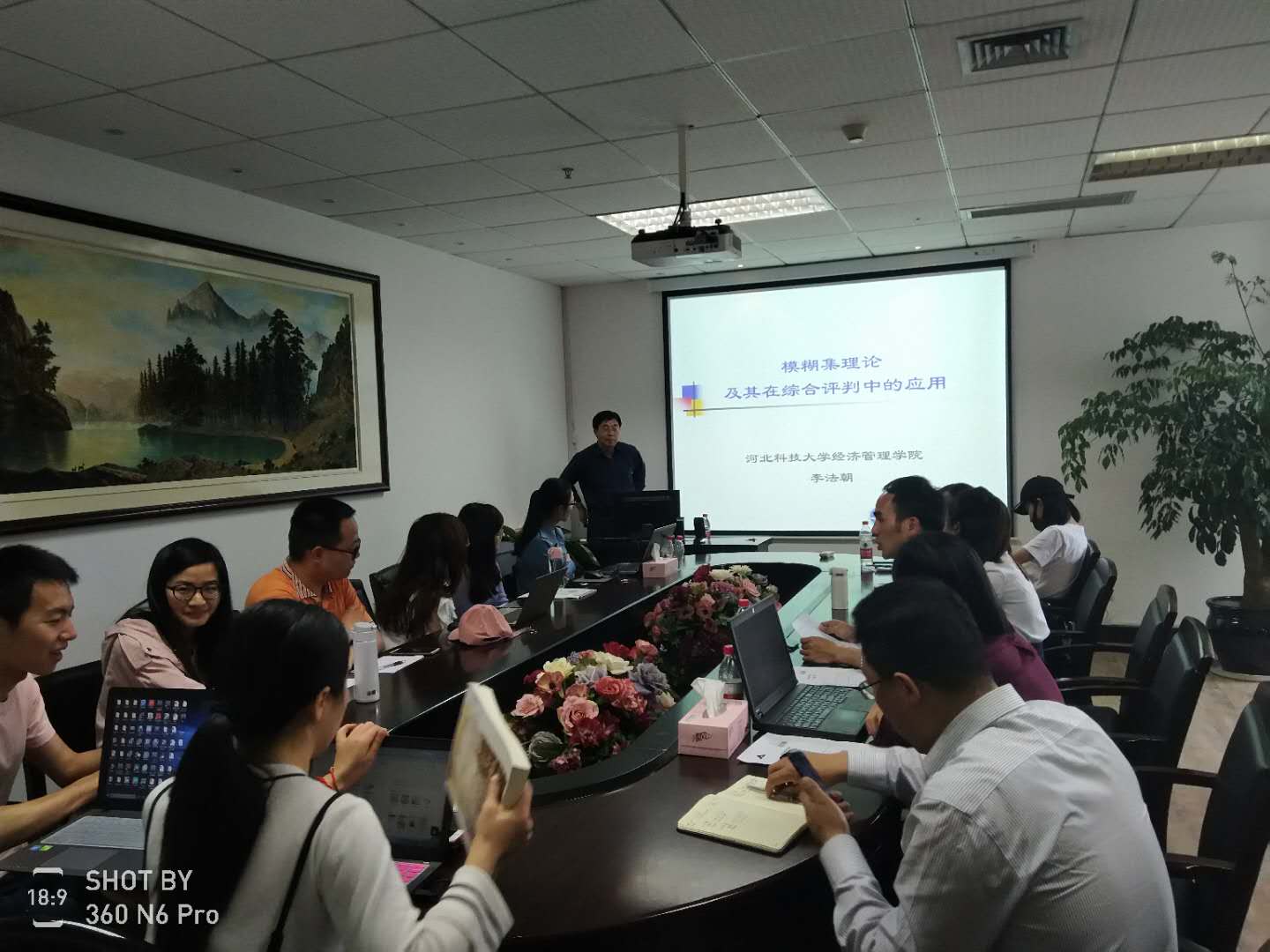 师生做了一场关于《模糊集理论及其在综合评判中的应用》的报告,报告模糊集理论开始然后结合生活实际层层铺开,深刻的给大家讲解了模糊集处理没有定数的东西,但又是有迹可循的。