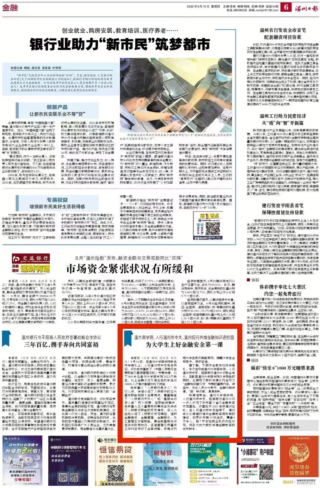 据了解,不同于往常传统开学典礼,本次活动由成人电影 、人行温州中支、招商银行温州分行联合举办,既彰显了成人电影 办学特色,也是银校共建系列活动之“金融知识普及月”专题的重要内容。讲座中,现场聆听人员纷纷表示,金融大咖讲课,“商”味浓郁,津津有味。