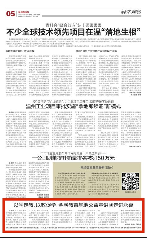 与招商银行温州分行共建金融教育基地以来,在双方的共同努力下,吸引了多家金融机构加入到金融教育基地当中,队伍越来越壮大、活动越来越精彩,他们秉持着服务初心,让金融教育在高校、社区、农村、企业生根发芽,以长效化、常态化的机制为基础,逐步将金融教育基地打造成示范样板。(通讯员:潘道品 周洁文 聂海燕)