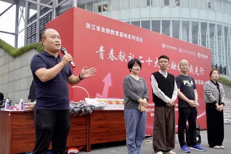 党委副书记唐华为活动致辞,唐书记用“三新”介绍了本次活动的意义。一是主题新,活动将宣贯党的二十大精神与金融教育、体育强国相结合;二是形式新,大家走出教室和办公室,共同参与到红色主题定向活动中;三是内容新,融入了党的二十大和金融知识答题、团队合作游戏、校园打卡等项目,寓教于乐、精彩纷呈。