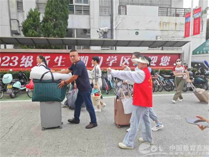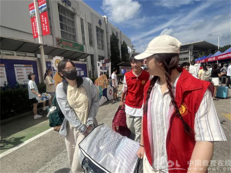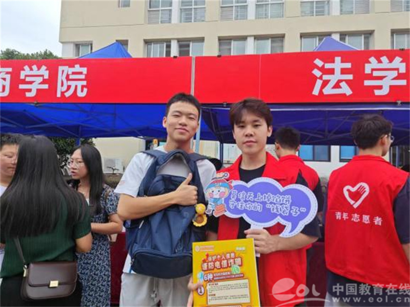 宣讲员们一边帮助学弟学妹搬运行李,一边为他们送上防诈骗指南,如:如何识别“山寨新生群”“电话卡推销”“学费退费”等骗局,让同学们擦亮识骗慧眼,小心上当受骗,帮助大家守住“钱袋子”!
