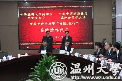 有关负责人及师生代表参加了签约授牌仪式。根据签约协议,共建双方将党建工作建立在银校合作项目上,创建国有银行、瓯越名校党建共建品牌。