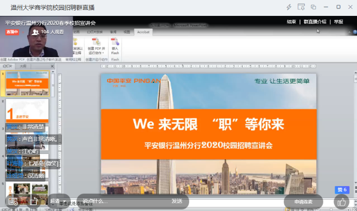 是我们当地一所综合性大学,也是浙南唯一一所综合性大学。长期以来,我们双方保持着密切的联系与互动。鉴于疫情影响,我们决定将原定的现场招聘转向线上开展,最大程度上确保学生们顺利就业。”