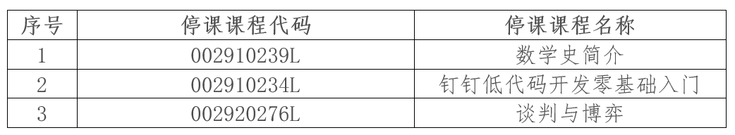 公选课停课课程详见下表