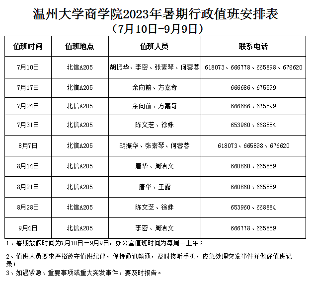 成人电影 2023年暑期行政值班安排表