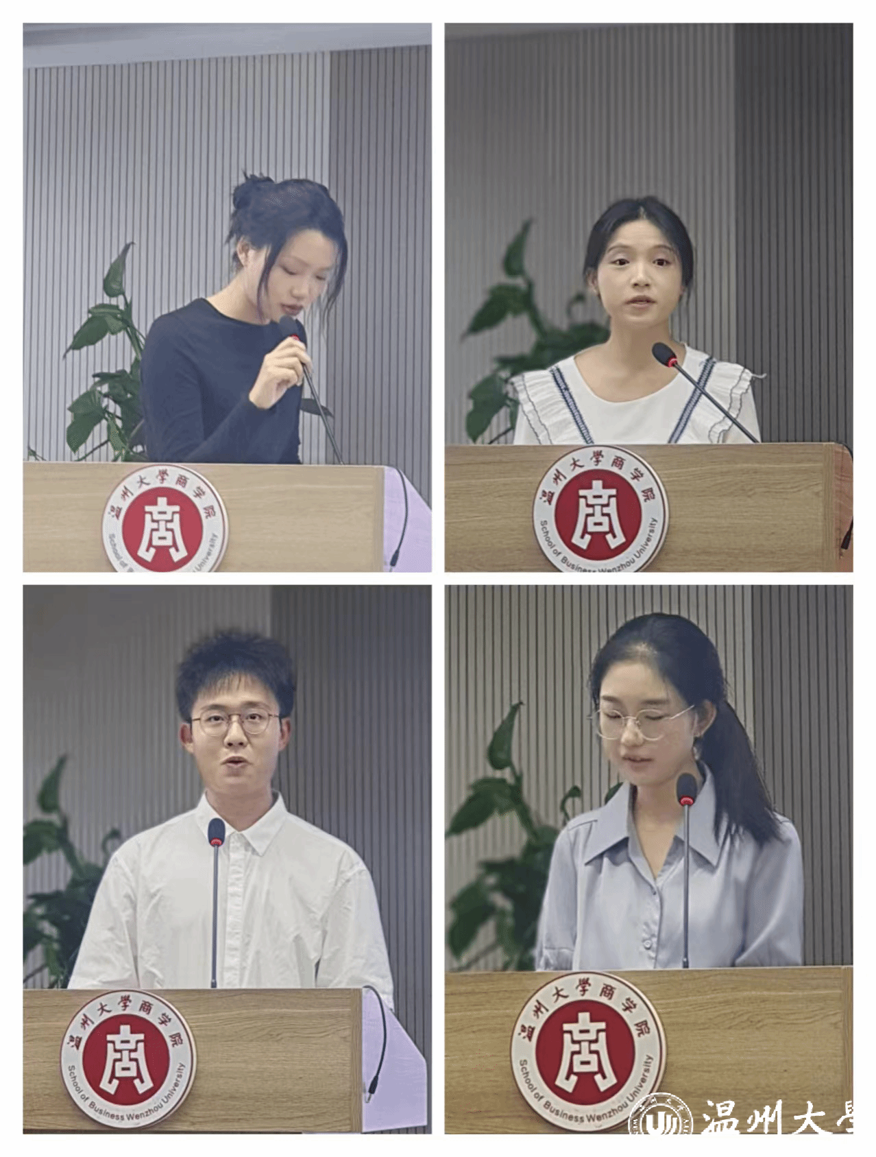 新生代表24应用经济学李静雨同学和24金融李钧诺同学分享了自己研究生三年的规划和对未来的展望,展现了扎实的专业功底和积极向上的精神风貌。紧接着,23应用经济学袁一丹和23金融彭琪学姐结合自己的亲身经历和成功案例,在学术科研、社会实践、职业规划等方面进行了深入的分享,希望学弟学妹们可以定好目标,找准定位,让自己的研究生生活变得丰富而多彩,为新生们提供了宝贵的经验借鉴和实用建议。