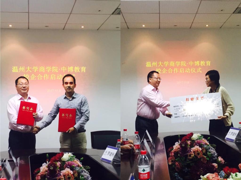 副校长薛伟教授,中博教育董事长毛金明先生、华东大客户总监张晰、温州总经理叶杨、华东大区经理孙泽旭,以及成人电影