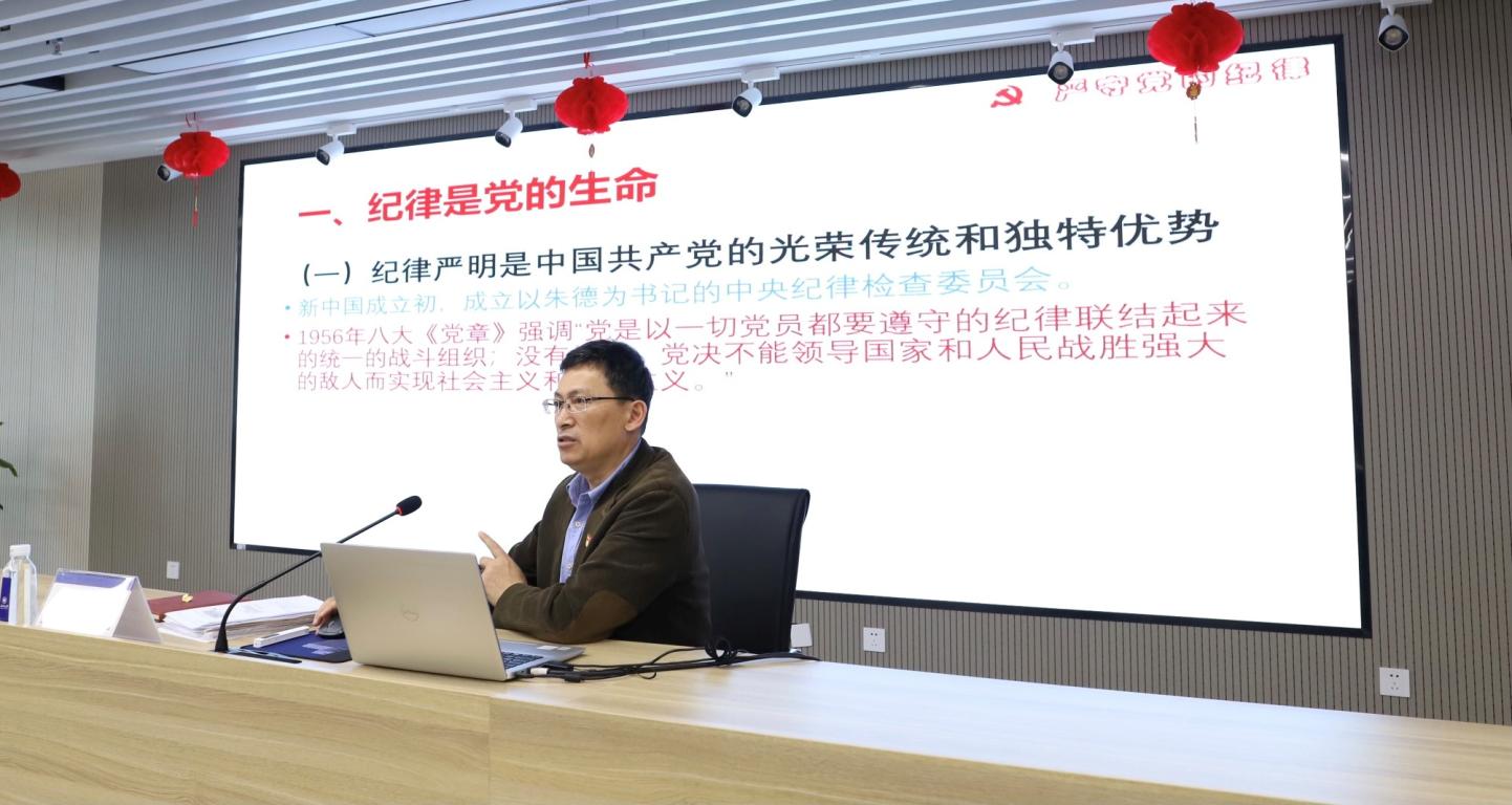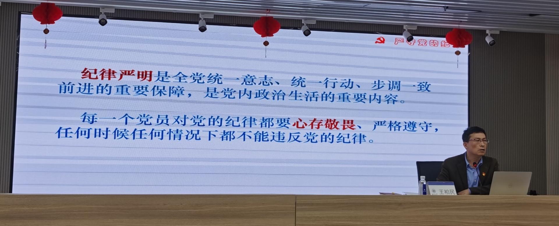 在简短的五分钟休息过后,马克思主义学院党委书记王柏民老师为学员们做《严守党的纪律》主题讲座。王老师以“入党誓词”为切入点,结合鲜活的案例,从纪律是党的生命、党的纪律主要内容以及严守党纪的新特征新要求三个板块做具体的讲解。最后,在讲座结束时,王老师对在座的党员骨干们提出要求:“每一个党员对党的纪律都要心存敬畏、严格遵守,任何时候任何情况下都不能违反党的纪律。”