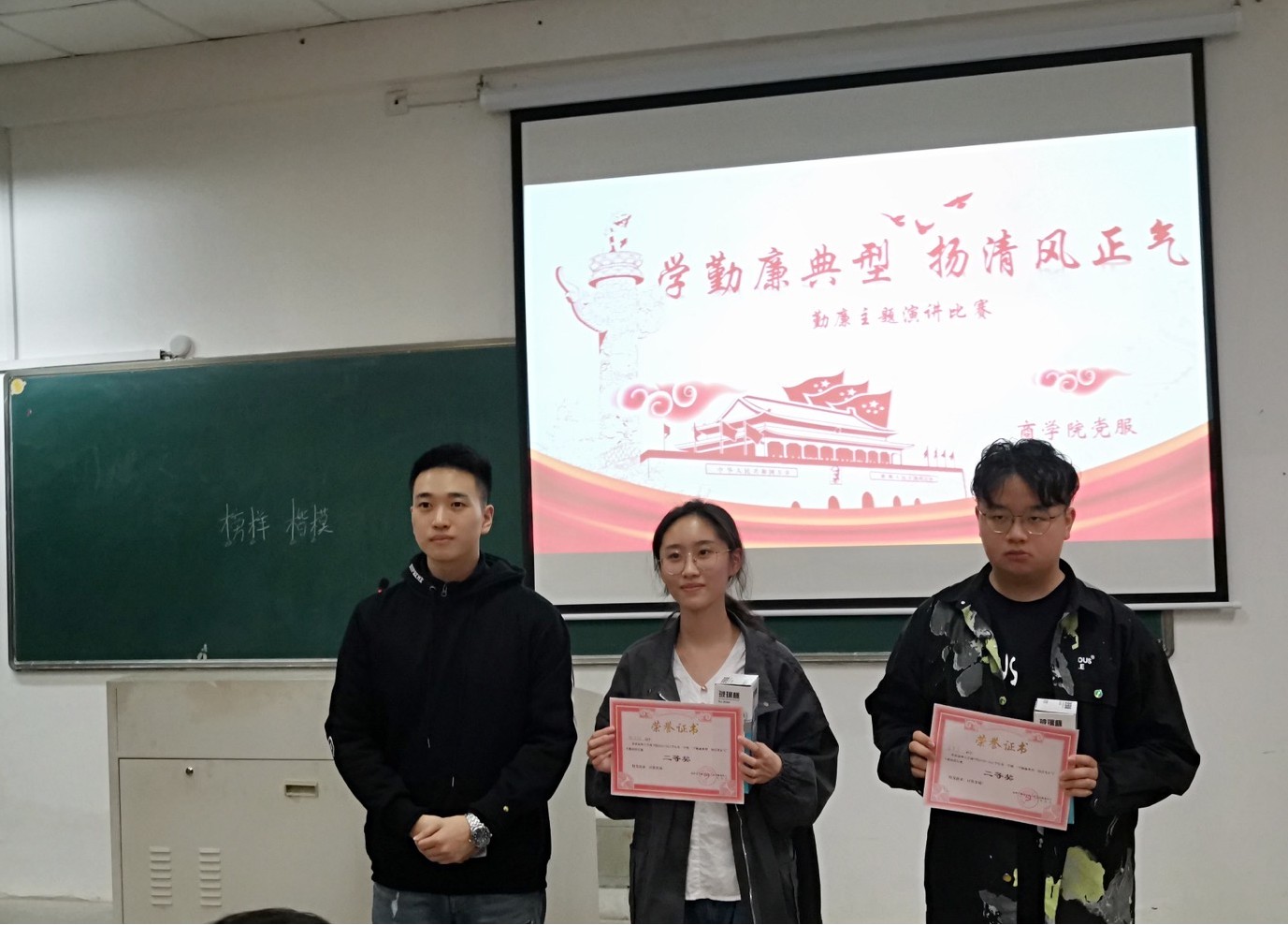 每位选手都紧紧围绕着勤廉这一主题,或深情回忆,或畅谈感想,或立足现在,或期许未来,以勤廉榜样事例呼吁大学生们习勤廉之风。演讲结束后,评委们对本次参赛的选手们的表现都给予了充分的肯定,并从着装的正式性、演讲结构的完整合理性、PPT的制作以及演讲技巧等多方面提出了一些建设性意见。最终经过激烈的角逐,丁冰冰同学获得一等奖,宋飞宇、陈月雅同学获得二等奖,韩前、江凌波、古丽扎提·于山江同学获得三等奖。