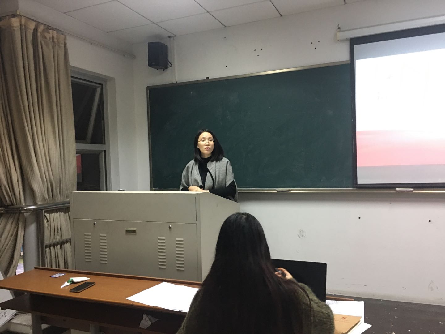 第六项议程,支部书记韩新华老师讲话。韩老师首先肯定了此次理论学习会议,同时表示希望在座的党员同志能够将十九届五中全会的会议精神贯彻落实到行动中,积极参加党组织生活、支持党支部建设工作,在平时的工作、学习中发挥好党员的先锋模范作用。