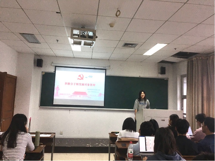 研究生党支部线下召开了拟发展对象答辩会,本次会议共10名积极分子参加答辩。支部书记韩新华老师及26名正式党员、6名预备党员参加本次大会,会议由支部组织委员陈丹女同志主持,共设三个环节。