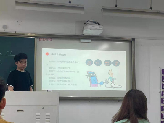 “经常会看到学校里的同学被诈骗,让我觉得校园防诈骗刻不容缓。我经常遇到自称期刊社的编辑给我打电话问我要不要投杂志。作为商科研究生,应该尽到我们自己的一份力。”作为本次活动的宣讲人,夏禹同学有着深刻的感受。