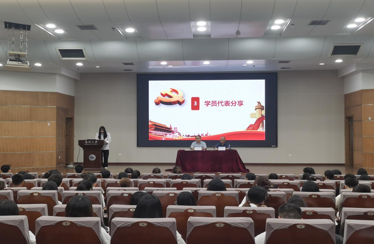 接着,体育与健康学院预备党员朱逸清作为优秀学员代表发言,朱逸清同学通过讲述自己参与培训的心得与体会,号召在座预备党员同志努力加强学习,树立终生学习的意识。