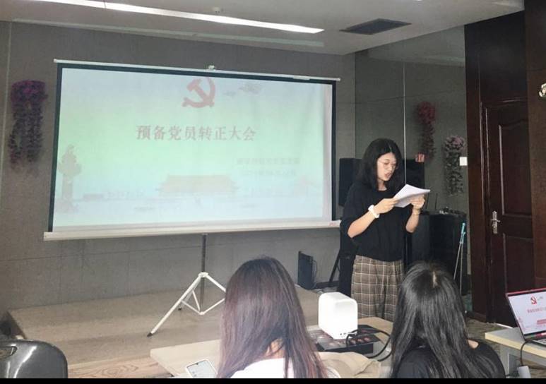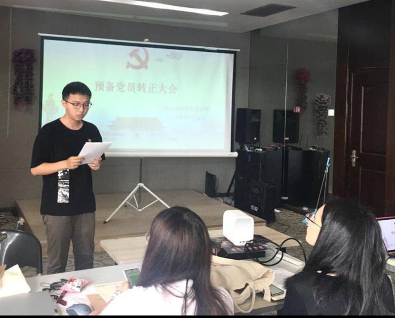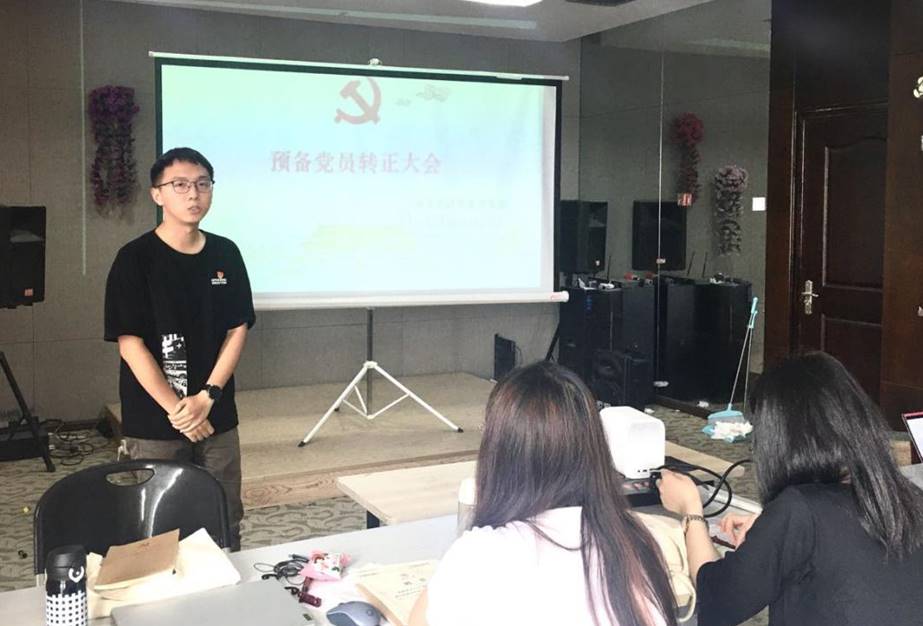 接着支部宣传委员王钰洁同志、支部副书记梁城超同志分别代表支部委员会报告对黄洁同志、姚易轩同志在预备期间的教育考察情况,并由与会党员针对发展对象进行充分讨论。经与会正式党员慎重思考,对两名预备党员依次进行匿名投票。宣布结果后,两名预备党员分别进行表态,均表达了能在中国共产党成立一百周年之际成为一名正式党员的激动之情,并表明在日后的学习、生活、工作上会以党员的标准严格要求自己,向一名优秀的共产党员靠近,始终坚持“不忘初心,牢记使命”。