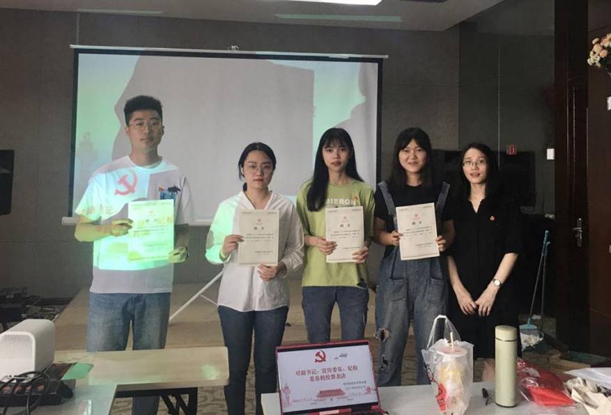 研究生党支部支委换届大会。大会根据支部现有党员人数,增设纪检委员一职,并根据前期支委报名,以及支部对几位同志的考察,最后提名徐婷燕为支部副书记、徐丽媛为支部宣传委员、邱海桐为支部纪检委员。大会通过后,由韩新华老师为各位支委颁发聘书。