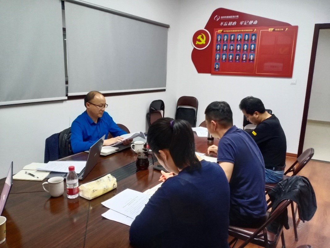 教工第一党支部的《鹿城人口变动及其中长期经济社会发展》课题组前往鹿城区统计局,研究鹿城区人口变化问题,课题组成员由支部夏怡然老师、李永盛老师和所指导的研究生们组成。