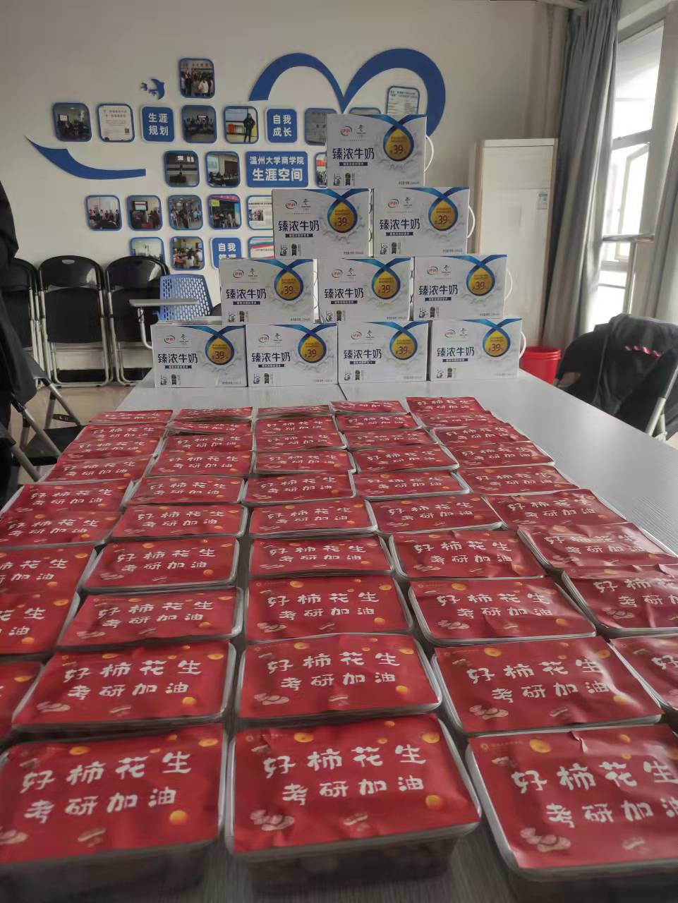 党委书记郑彩莲为考研学子送上暖心祝福,并且精心挑选 “暖心加油包”,其中包括两样特别礼物——柿子和花生,寓意他们“好柿一定会花生”,马到成功。