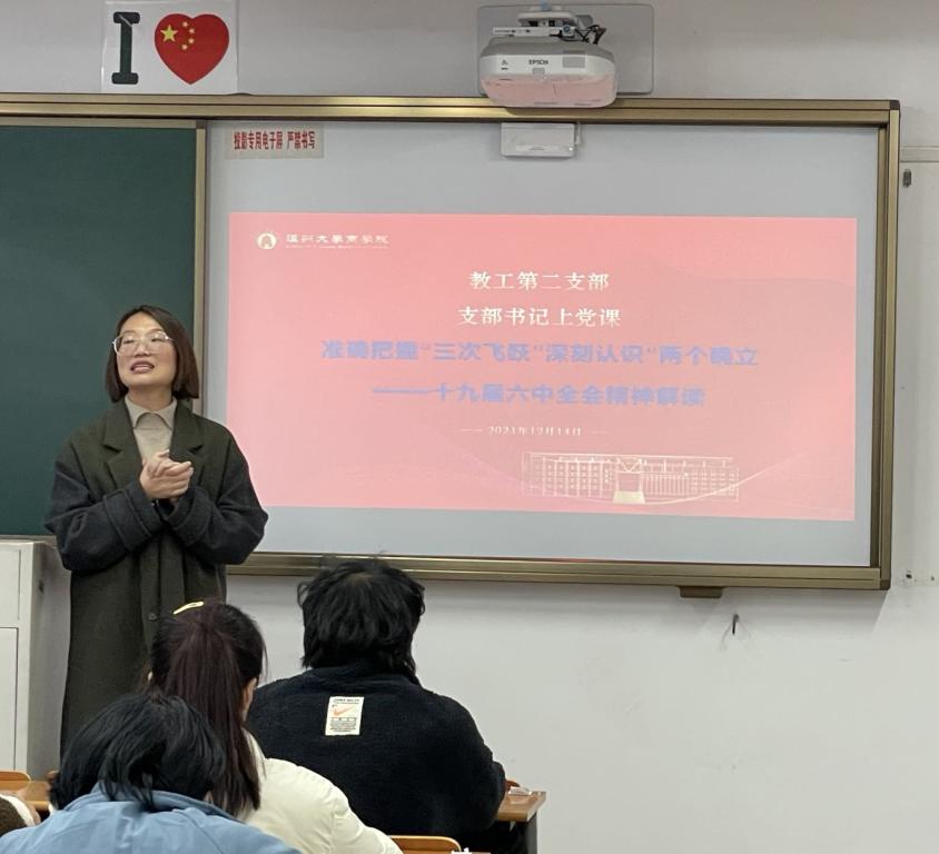 通过党课学习,学生和支部党员教师积极发表心得体会。学生代表表示,作为新时代的中国青年,要有“以青春之我,奉献青春之国家”的抱负和志向,以伟大的建党精神为笔,绘就坚守信仰、奋斗不息、努力拼搏、为民服务的“青春画像”。支部教师们纷纷表示,要认真学习贯彻十九届六中全会精神,深刻把握“坚持人民至上”的宝贵历史经验,结合教学、科研、育人的本职工作,砥砺初心使命,从最突出的问题抓起,全心全意办实事、解难题,为社会进步和学校事业发展贡献力量。
