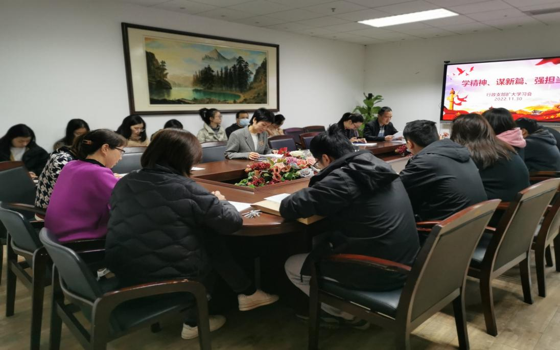 A222会议室召开了行政支部扩大学习会,传达落实学院党政碰头会精神及学习贯彻党的二十大精神。支部书记黄兴利主持此次会议,全体行政人员参加会议。