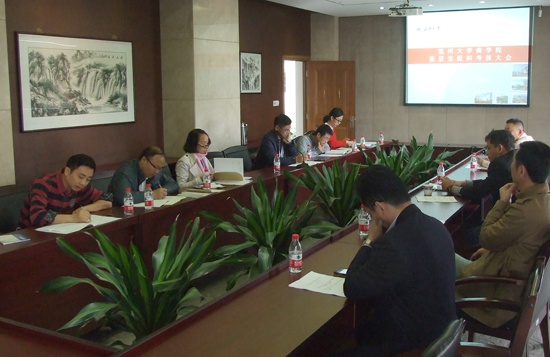 各党支部书记分别从支部构成,基础组织建设,支部活动,特色工作等方面汇报总结了各支部一年来的工作要点,并就支部建设,下年度工作计划等提出了相关意见与建议。一年来,各支部始终贯彻落实党的十八届三中全会、十八届四中全会精神,以促进师生和谐为主题,以强化师德师风建设为抓手,以提升教学科研质量为目标,积极参与工会、共青团建设,充分发挥了党员的先锋模范作用,有效凝聚了各方力量,促进学院稳步、和谐发展。一年来各支部继续开展与困难学生结对助学活动,部分教师利用假期走访学生家庭加强家校联系,深入学生寝室落实寝室导师职责;定时定期开展民主生活会、评议会、党支部考核会等;各支部分别利用课余时间参观走访永嘉红十三军军部旧址、泰顺红军挺进师纪念馆、瑞安西山烈士陵园等革命基地开展爱国主义教育。此外,每位党支部书记在工作汇报中都正确对待本支部存在的问题和不足,客观地评价本支部,并就支部下一步工作开展提出合理化建议。会上,党总支全体成员对各党支部进行了评议打分。