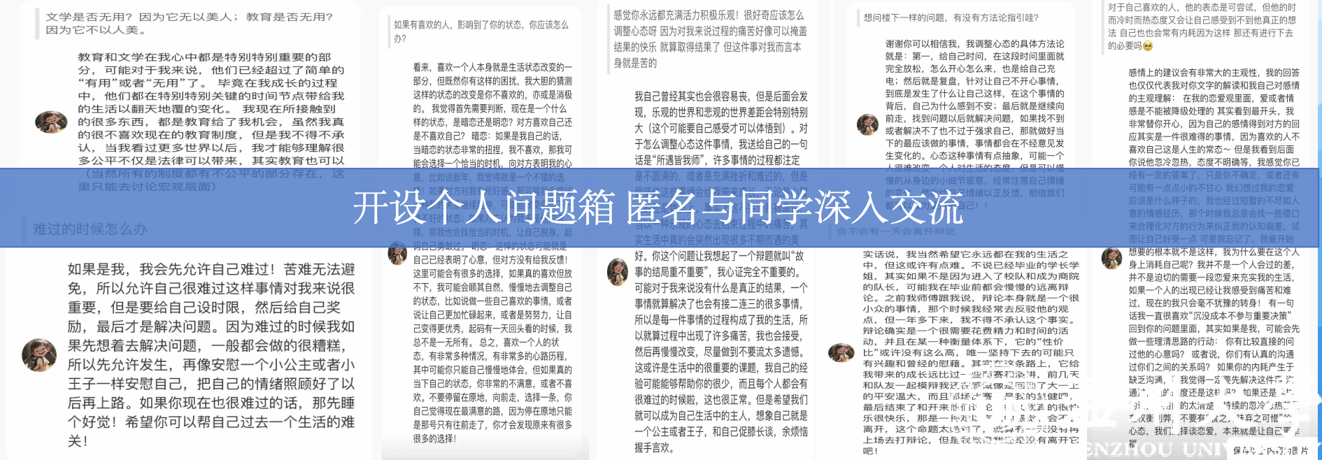 作为班级心理委员,除积极开展心理工作外,刘芷君也积极践行朋辈教育。持续学习提升专业能力的同时,陪伴与帮助12名同学摆脱心理困境,连续三年被评优秀心理委员。听到的故事愈多,她发现这条路愈有意义。2023年她开设“问题箱”与匿名提问同学深入交流;开通小红书账号公益回复同学评论及私信;2025年开设“湖底的信箱”公众号。累计有效回复334名同学私信,约30万字。刘芷君同志在一次会上发言讲到:“世上或许没有真正的感同身受,但如果你愿意,我愿听听你来时的路,尽力懂一点你的心”。