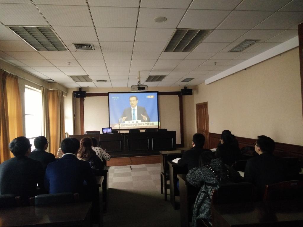 全体学生党员认真观看“2017年李克强总理会见中外记者会”的视频,十二届全国人大五次会议15日上午在人民大会堂举行记者会,会议开始李克强总理对大家亲切问候,主要内容涉及中美问题,李克强总理表示,中美关系不仅关系两国利益,而且事关地区和世界的和平安全稳定,我们要维护它前行。至于贸易问题,智者的办法是扩大共同利益,分歧点所占比例就会越来越小。关于简政放权的问题,总理提到简政放权、放管结合、优化服务是三位一体的,也就是政府要把更多的精力放到事中事后监管和优化对人民群众的服务上,把市场的准入放宽了,那就要为市场主体公平竞争营造环境。要把更多的力量用于扶贫攻坚、棚户区改造、义务教育、基本医疗等诸多民生关注的方面。这次答记者问的过程中李克强总理对于每位记者的回答都给了一个很认真的回答。