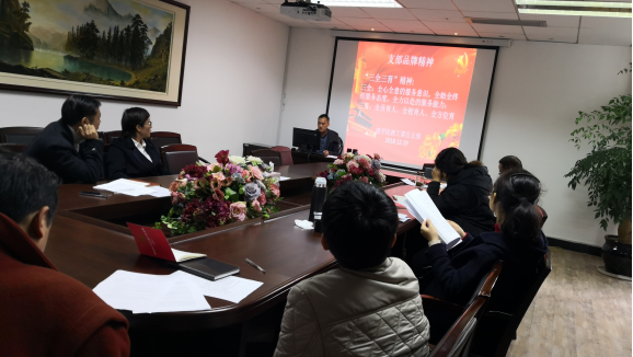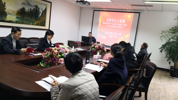 首先由支部书记黄兴利上党课:“解读《中国共产党支部工作条例(试行)》” 和学习“习近平在庆祝改革开放40周年大会上的讲话”精神。