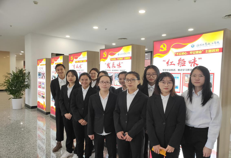 瓯江学院“瓯江红”实践基地参观展览,重温入党誓词,回顾建党历史,吸收党建知识,继承并发扬“敢为人先”的精神。