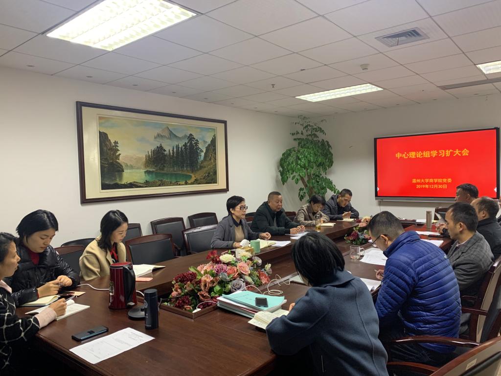 12月30日上午,我院党委召开中心理论中学习会,专题学习传达十九届四中全会和姚高员市长报告会精神。学院班子成员、党委委员、纪委委员、各支部书记等出席会议。会议由郑彩莲书记主持。