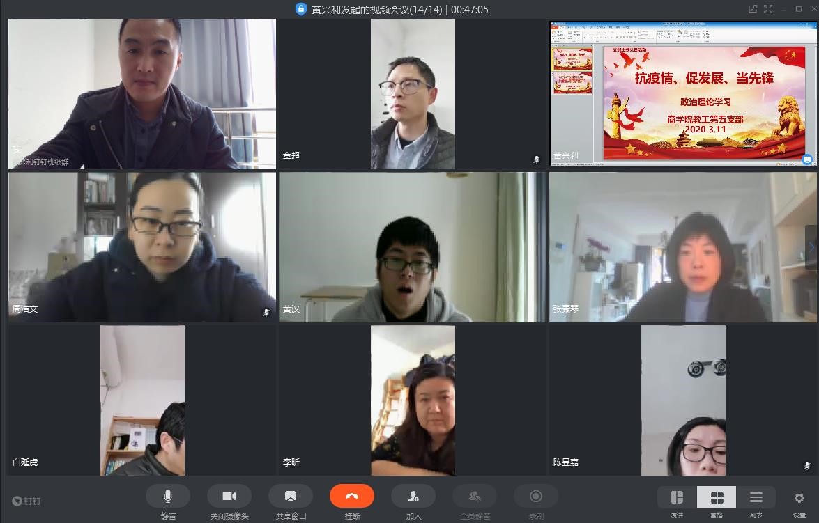 教工第五党支部于2020年3月11日上午在通过钉钉视频会议召开政治理论学习会。