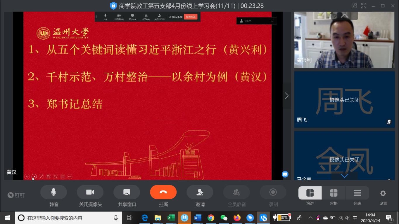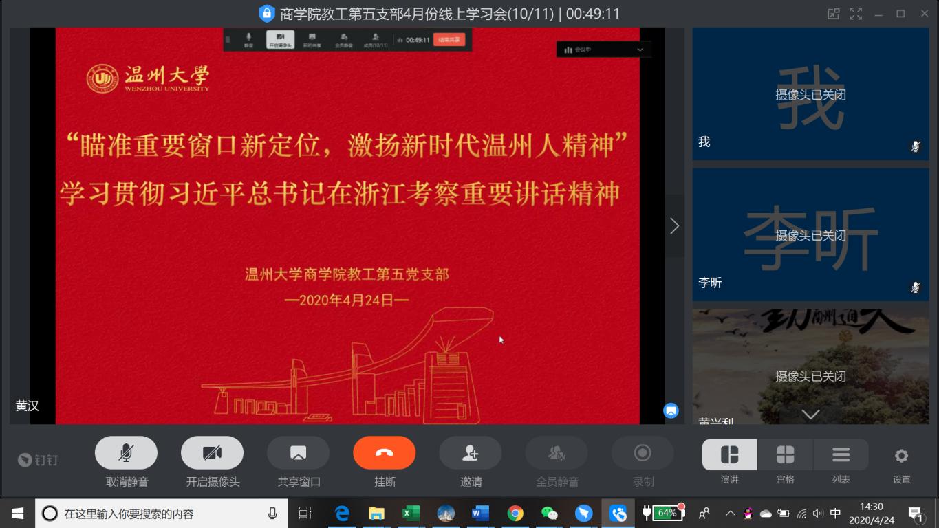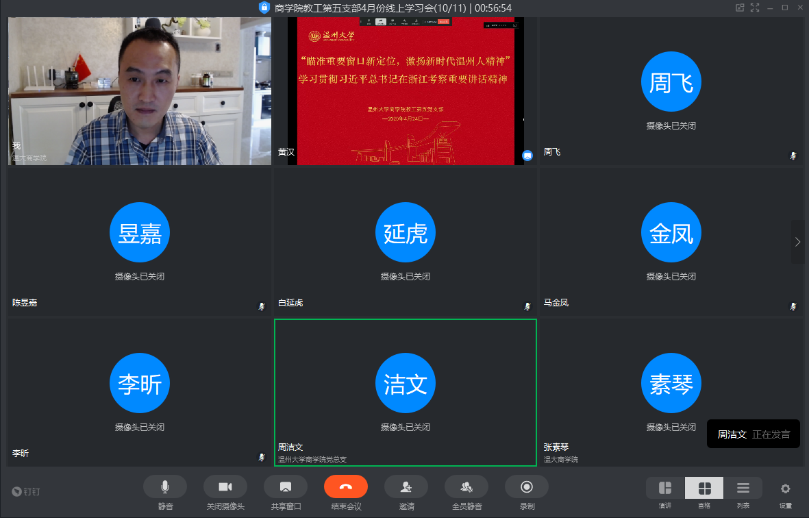 教工第五党支部召开线上集中学习会,专题学习习近平总书记在浙江考察时的重要讲话精神。支部全体教师党员出席学习会。