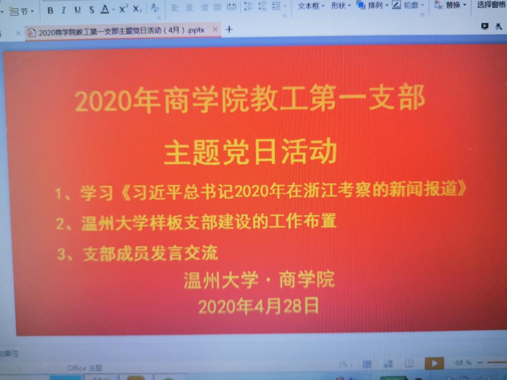 教工第一党支部召开4月主题党日活动,学习习近平总书记在浙江考察的重要讲话和精神,会议以腾讯会议的形式进行。