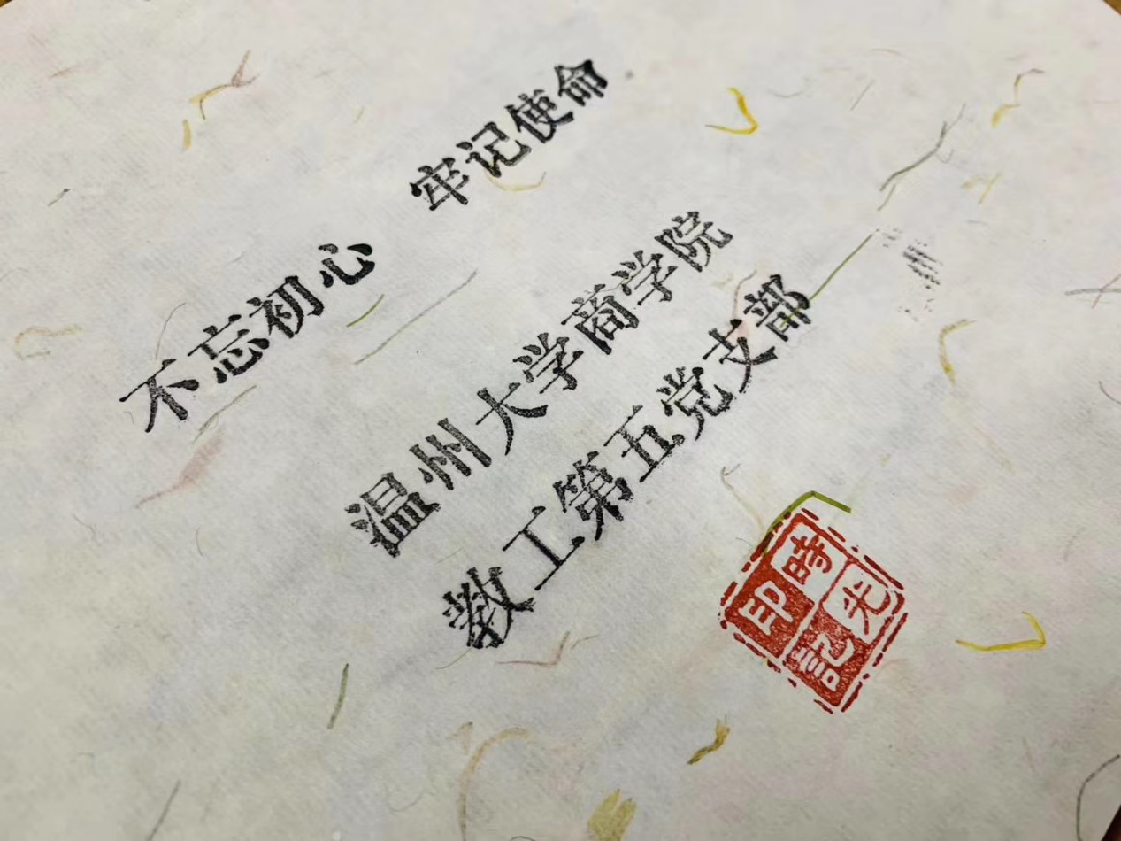 党员们随后在时光印记馆现场体验活字印刷项目,每一名党员同志亲自制作一把“初心”团扇,进一步巩固深化“不忘初心、牢记使命”主题教育成果。通过实地走访,让非遗走进党员们的生活,近距离的接触我国优秀传统文化,有利于学院党员形象直观地感受非遗文化的继承性、民族性,更加深刻地认识中华传统文化,增强文化自信和文化自觉,以践行社会主义核心价值观。同时此次活动有利于加深党员对我国非物质文化遗产保护的了解,将我国优秀文化遗产所蕴含的民族精神进行传承,增强党员们保护文化遗产的紧迫感和使命感,肩负起保护我国优秀文化遗产的神圣使命。