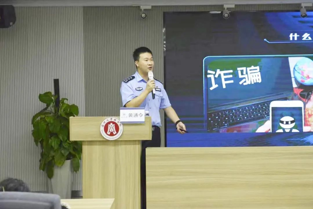 活动现场,反诈中心黄警官通过“哪些人最容易受骗”这一话题,开始与学生的互动探讨,引出什么是电信诈骗这一主题。紧接着,黄警官对骚扰电话和垃圾短信等典型电信诈骗案例进行详细分析,让同学们生动地感受到电信网络诈骗的无孔不入和不良影响。同时,结合大学生受骗案发的现状,从女生男生的兴趣爱好、大群体生活、新型的诈骗内容等逐一切入,解读了电商购物、虚拟网游和微信百万保障知识盲区等最新案例,提醒同学们提高警惕、防诈意识。杀猪盘诈骗、冒充公检法诈骗、刷单诈骗,这些诈骗手段通过黄警官生动、详细地剖析,让同学们深刻的认识到了“没有无缘无故的爱,也没有无缘无故的恨,天上不会掉馅饼”。最后,黄警官针对此次宣讲主题,设置了有奖问答小环节,让同学们在互动中进一步巩固了反诈知识。