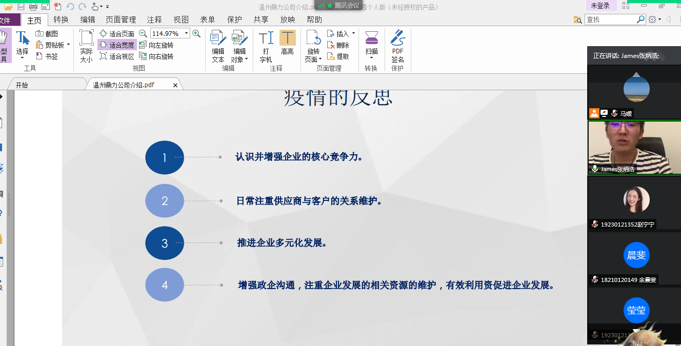 学长首先介绍了他公司的发展历程,分享了公司的成人电影,阐述了公司在疫情中的应对措施和对疫情的反思。