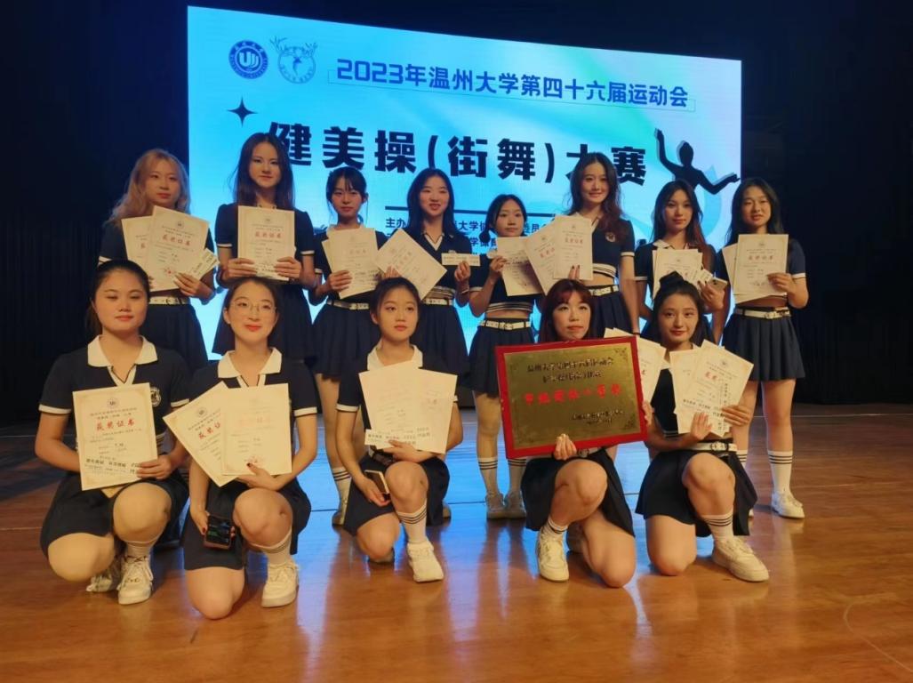 健美操队以广播体操项目18.27分、自选套路项目18.57分的好成绩斩获广播体操项目第一名、自选套路比赛第一名、甲组团体第一名的大满贯成绩,完美的结束了本次健美操之旅!