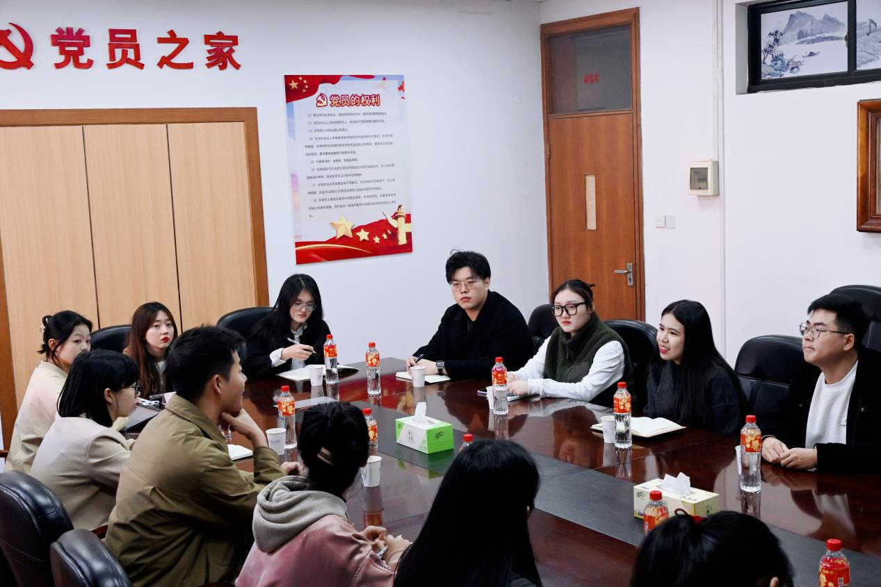 研会指导老师王景欣、学生科辅导员聂海燕和团学指导老师张春洋带领研会主席团、党服主任和团学主席团到杭州电子科技大学经济学院学习交流。杭州电子科技大学经济学院党委副书记连升炯、经济学院团委书记蒋梦丹以及研会主席和团学主席参加本次活动。