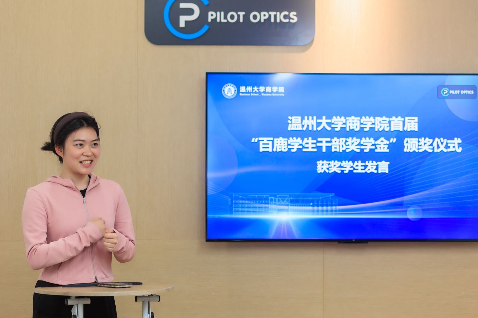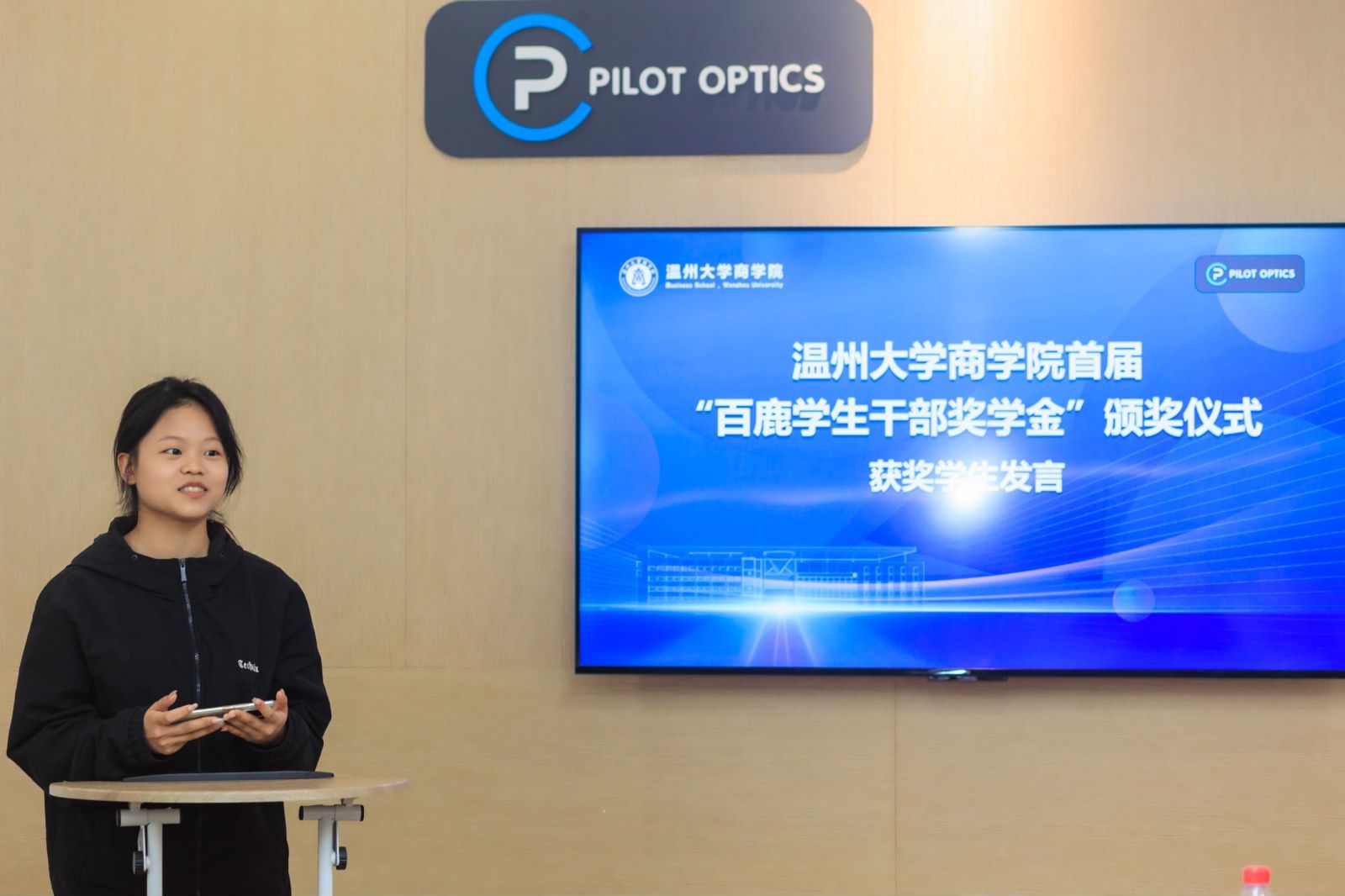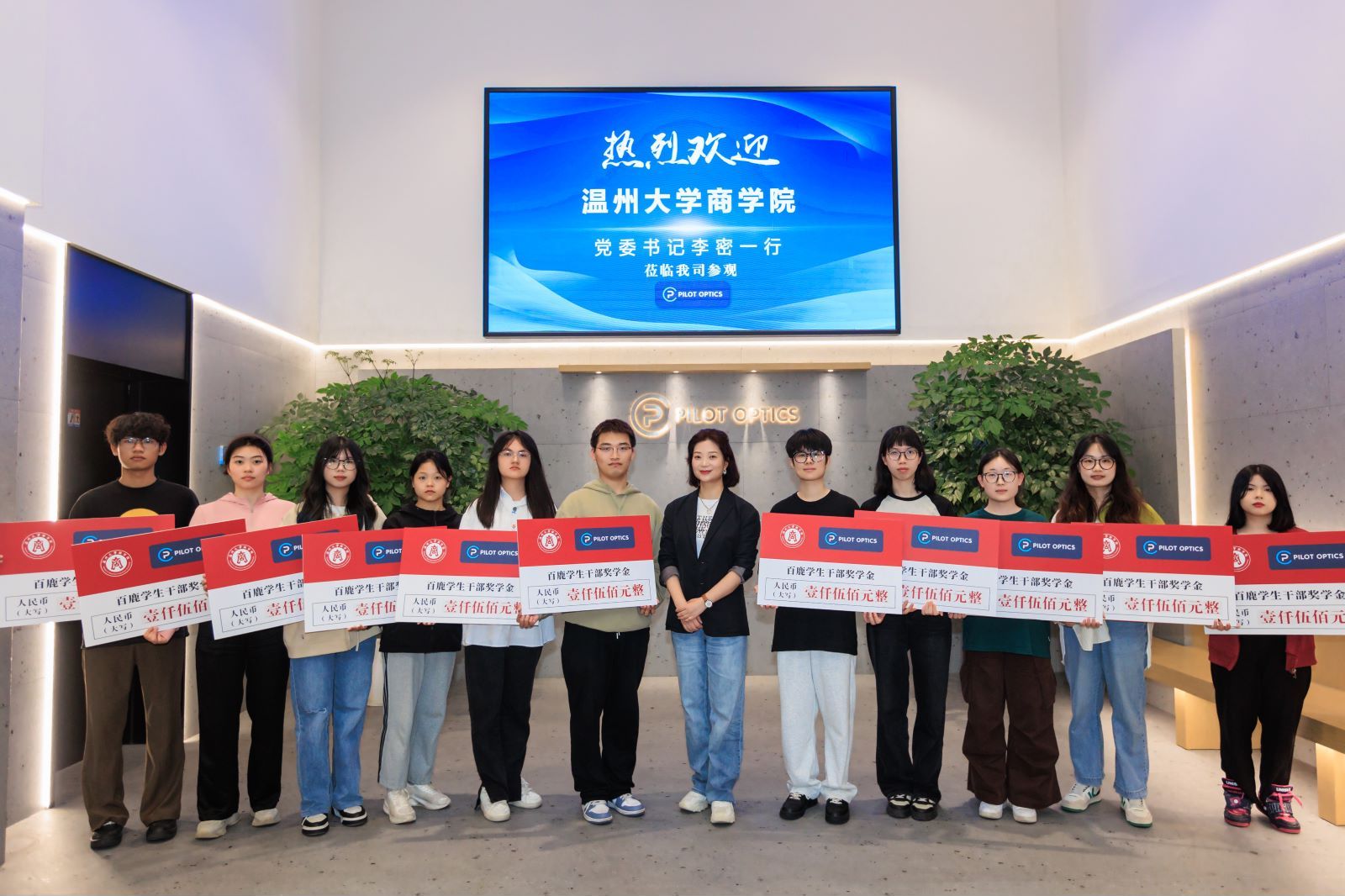 为发挥优秀校友的榜样作用,表彰学生干部在学院学生工作中的杰出贡献,4月16日下午,成人电影 在百鹿国际贸易有限公司举行了首届“百鹿学生干部奖学金”颁奖仪式。成人电影 94外贸校友、温州百鹿国际贸易有限公司董事长谢明明学院党委书记李密,党委副书记唐华,国贸系主任姜亮,学生科科长周洁文,研究生会、学生会、党员服务中心指导老师以及获奖学生干部代表参加了此次活动