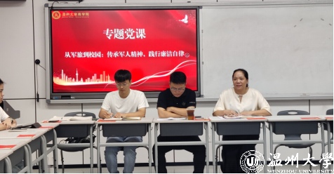首先,党委副书记曾蓓蕾代表学院欢迎各位退役大学生士兵升学至我校。部队生活十分不易,大家都为祖国的国防事业贡献了自己的青春,非常欣慰地看到同学们经过淬炼后的理性与成长。并希望大家能够传承军人精神,践行廉洁自律,尽快适应身份的转变;退伍不褪色,保持光荣传统和优良作风。