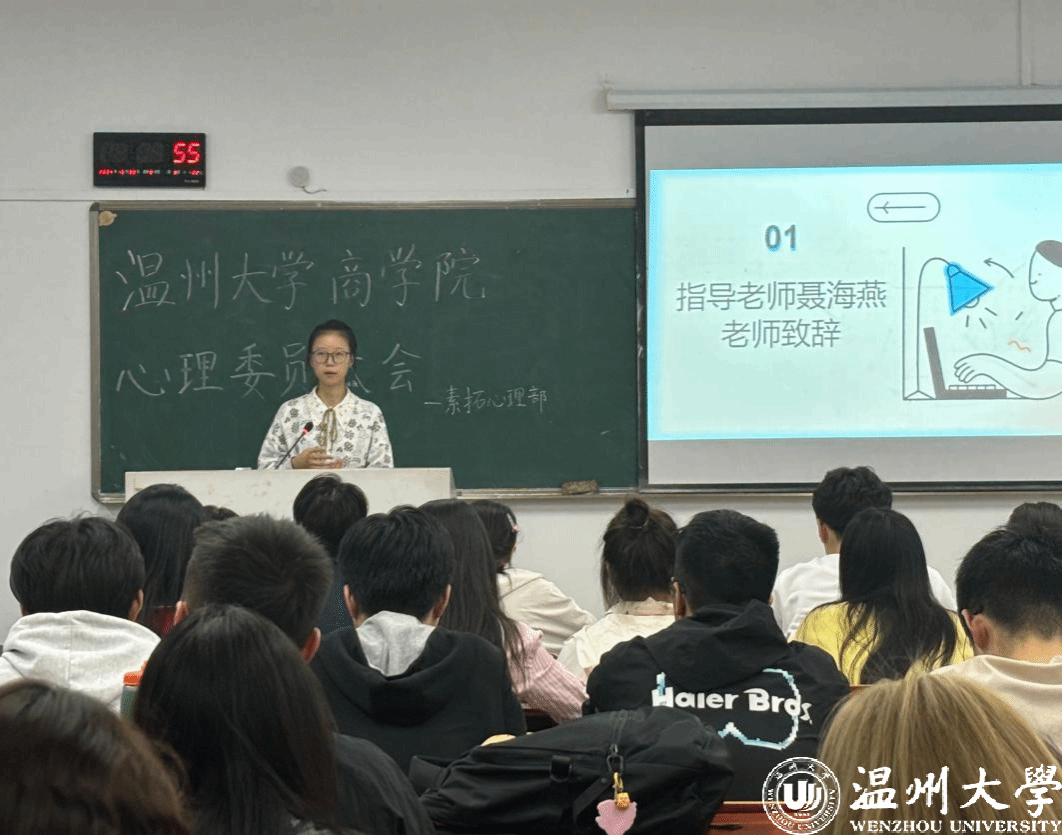 大会伊始,素拓心理部指导老师聂海燕老师致辞。她强调心理委员的工作对于构建一个健康、和谐的校园环境至关重要,并对心理委员的专业素养以及专业能力提出殷切期盼,希望各心理委员通过团队协作,以高度的责任心和使命感提高心理活动的质量,并积极配合素拓心理部的工作。