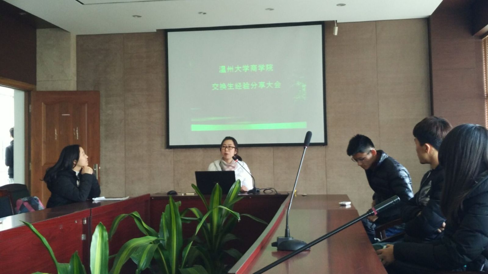 在交流会的开始,我们先是听到了在浙师大交换学习的周凡琦同学的分享,她以亲切的口吻向同学们介绍了浙江师范大学的学校情况以及浙师范的学生们的学习和生活状况。在介绍浙师大优美的风景和良好的食堂风气的同时,她以财管专业为例强调了在平时学习中应加以锻炼和实践的重要性。她说开阔眼界、增进友谊、端正态度等都是作为一个交换生所收获到的,这也应该是作为交换生的共性。