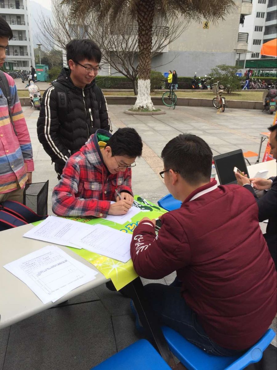 3月16号,2015-2016学年第二学期素质拓展培训班开始面向全校同学招生并在A、C、E区设点咨询。虽然这次的招生地比较偏僻,中间还因学区的消防演习,造成了场地的多次搬移空气中弥漫着浓浓的粉末,但是还是抵挡不了同学们对于羽毛球的热爱,现场的咨询的同学络绎不绝。