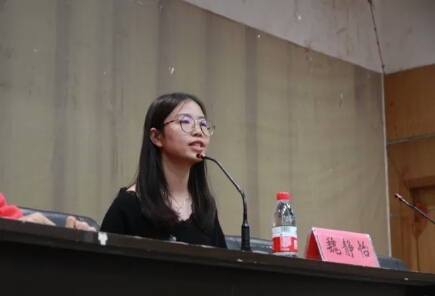 第三位演讲者魏静怡同学以夺人眼球的ppt制作技术引题——“学生会”,她向同学们阐释了一种正确对待学生会的态度,也通过述说自己的实践经历客观地表达出了加入学生会的重要性。她呼吁同学们勿忘初心,要把加入学生会当成一个锻炼自己,服务他人的机会,并在演讲结束时祝愿同学们在以后的日子里能够收获知识与挚友。