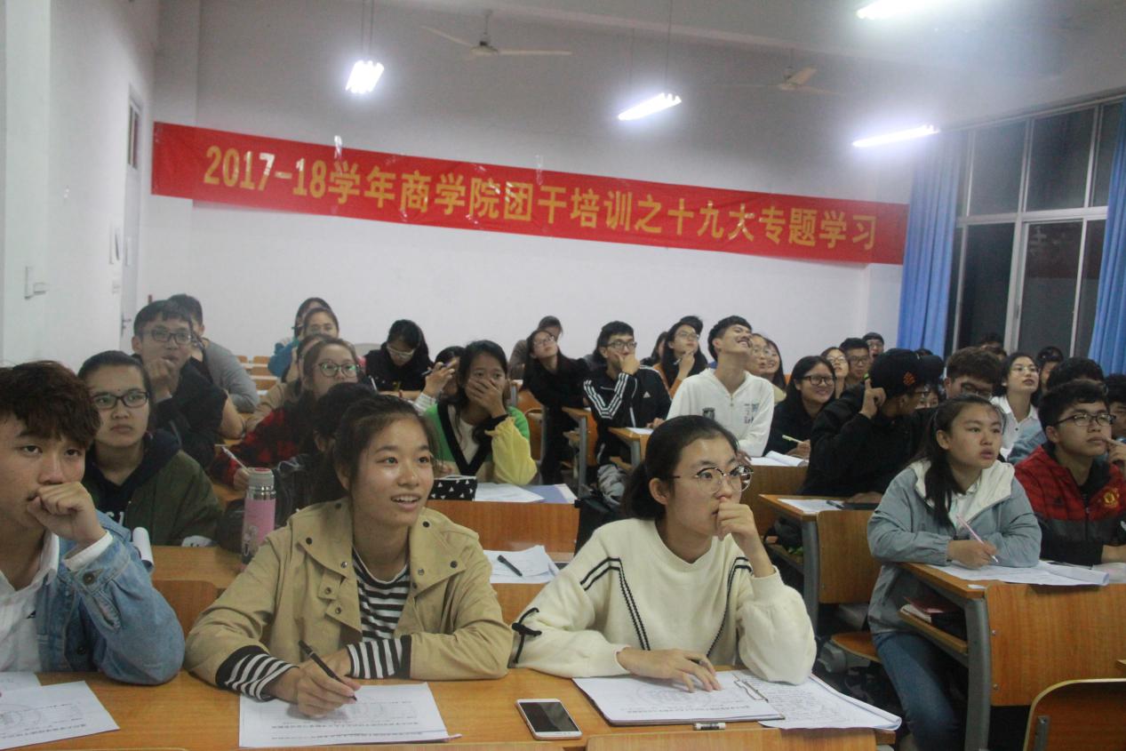 团委副书记陈扬,组织部,学风部部长、副部长和团委学生会全体成员参加了此次培训。培训旨在积极响应党的号召,让团学干事们学习好、领会好十九大思想;能够学以致用,提高工作能力;能够端正工作态度,养成艰苦奋斗精神。
