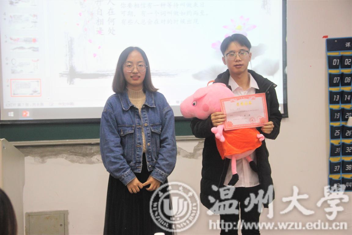 期间现场评委对各位选手进行了精彩点评,从演讲技巧到PPT制作都发表了独到分析和评价,既肯定他们的优点,又指出他们的不足并提出合理化建议。经过紧张的统计,最终陈顺同学在PPT演讲大赛中摘得桂冠,荣获第二名的是沈淑琦同学和尉帅辉同学,第三名的是许倩妮同学、李燕同学和项紫艳同学,荣获最具人气奖的是沈敏怡同学。最后,斯琳晓对本次活动进行了总结并对大家提出了期待。她希望选手们能总结比赛的经验,不断进步,同时她也鼓励在座同学向选手们学习,勇于大胆发声。