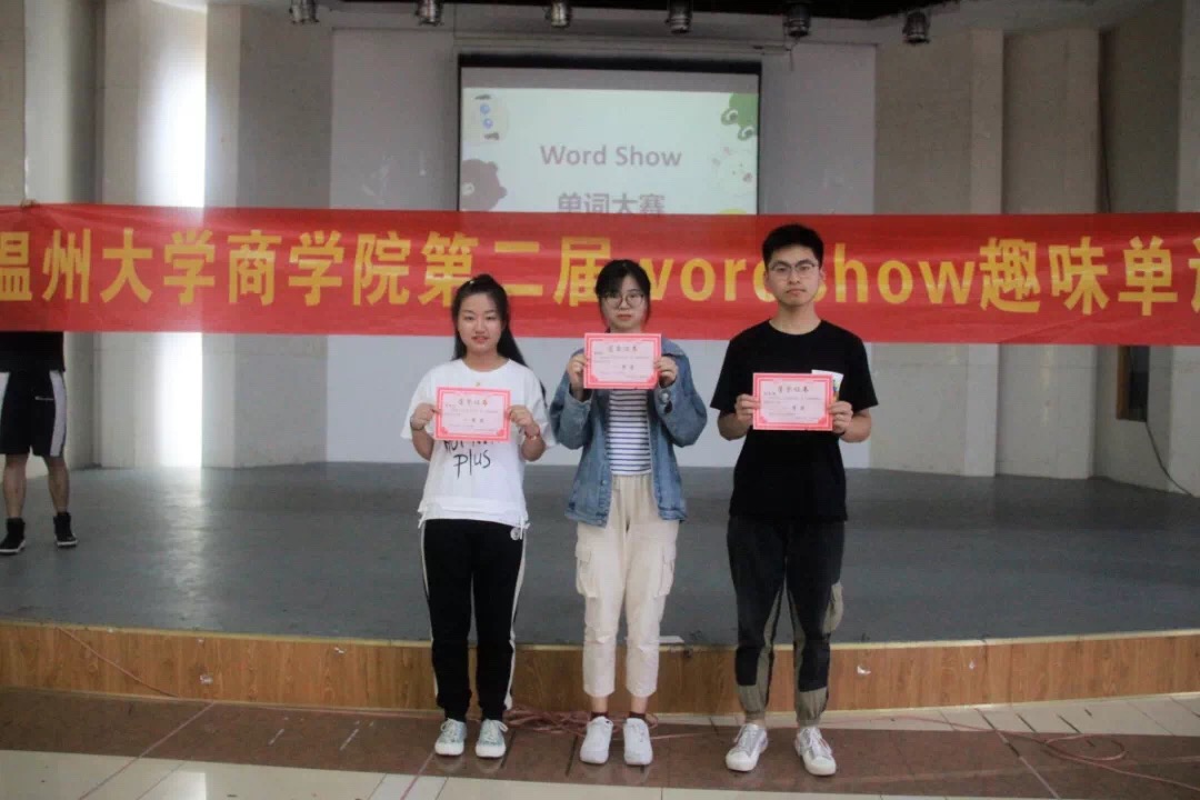 本次大赛通过游戏的方式锻炼学生的英语学习能力。此次活动由触类旁通、心有灵犀、最强大脑和身临其境四个部分组成,九支参赛队伍在游戏环节中各展风采。不同的游戏考验了同学们英语词汇量的广度,单词拼写的熟练度和单词中文意思的理解度等多方面的能力。在紧张刺激的游戏之后,六支队伍脱颖而出,荣获一等奖的是水煮鱼片队,获得二等奖的是平均身高180队,糙男加朵花队这两支队伍,词处不穷,逃团建和只求快乐不求赢三支队伍则取得了三等奖的好成绩。
