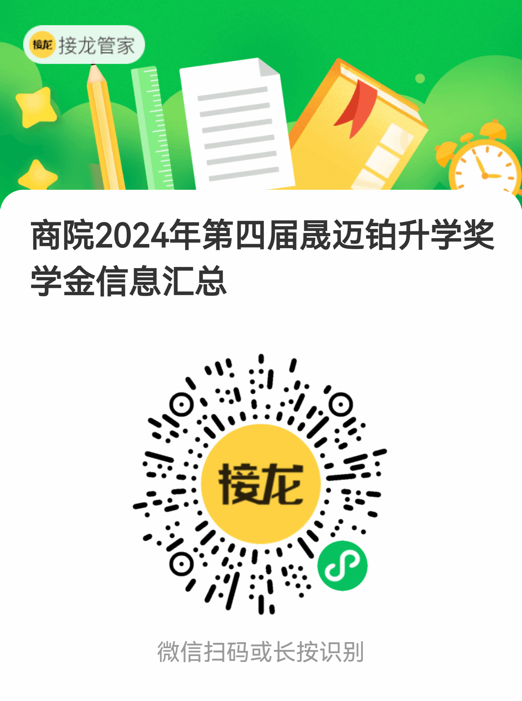 4、请在5月12日10:00用手机打开链接//b.jielong.co/j.html#5/1W8XFMVM8M 或者扫描二维码填写完整信息。