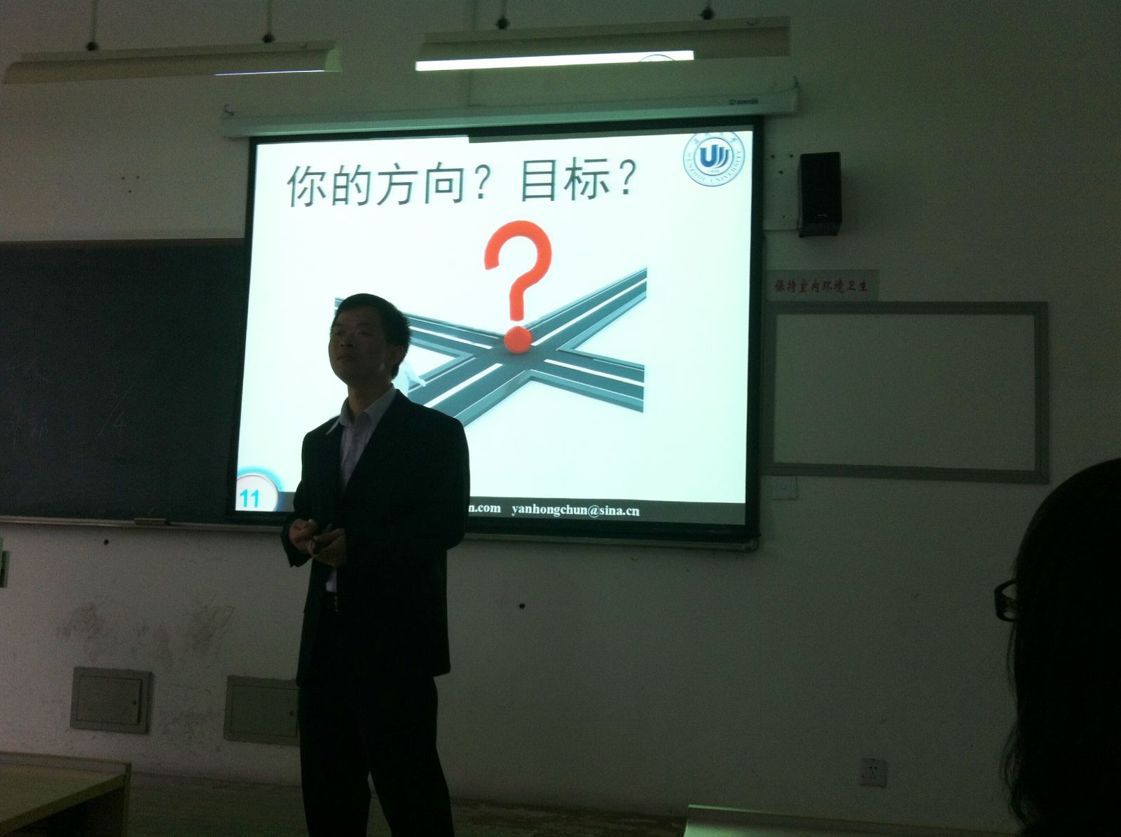 他首先讲到为什么要创业的问题。创业是为了什么,他将这个问题摆在了创业预科班同学的面前。同学们积极发言,有的人说,创业是为了达成自己的愿望,有的人说,创业是为了赚很多的钱从而赢得别人的尊重,有的人说,创业是为了做自己所喜欢做的事情并且不受到他人的束缚等等。彦红春在听了不同的发言后,说出了他对这个问题的看法,他说,同学们的创业热情很高,但是大多数同学们只看到了创业成功后所带给他们的结果,而忽视了其过程中的种种艰辛与困苦,创业不等同于成功,在如今这个时代背景下更多的等同于失败,但是我依然支持那些依旧为创业而拼搏的人,每一次创业的过程终将引领他们走向成功,我想告诉同学们的是,不要为了结果去创业,而是为了学到知识,丰富阅历而去创业,用这样的心态去创业,成功便指日可待。彦红春的这番话,让许多同学有了对创业的新的看法与认识,赢得了同学们的阵阵掌声。
