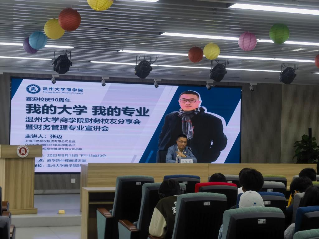 财务校友分享会暨财务管理专业宣讲会。作为财务专业优秀校友,上海平易股权投资有限公司总裁、交大安泰中国CEO俱乐部副会长、上海华向股权投资管理有限公司总裁张迈先生受邀为22级财务管理专业带来了精彩讲座。