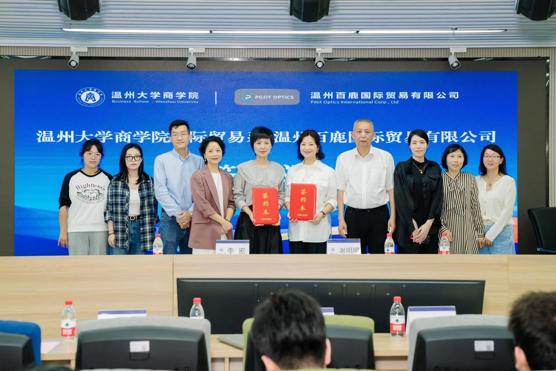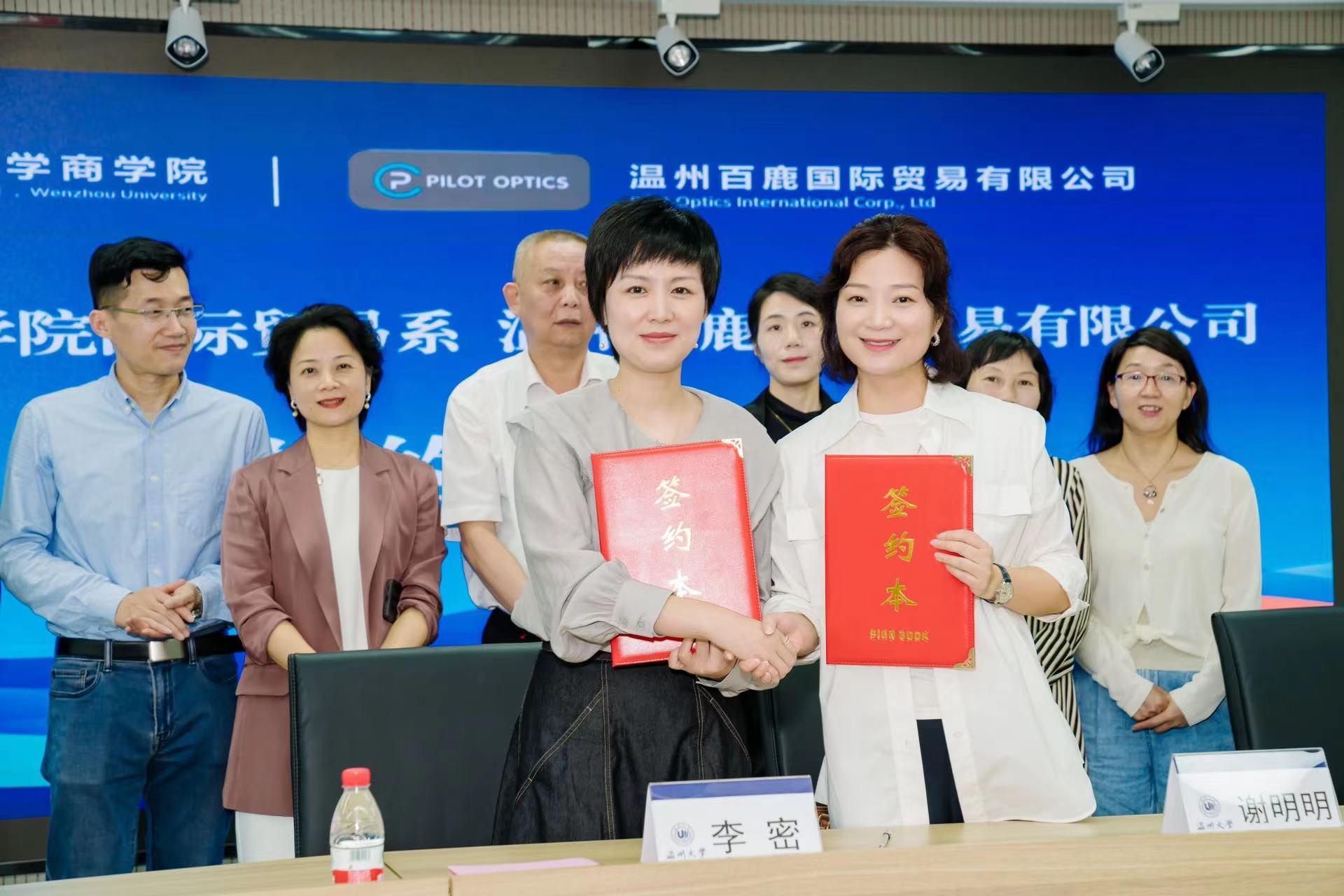 随后,李密书记与谢明明董事长代表双方签署捐赠协议,与国贸系老师合影留念。